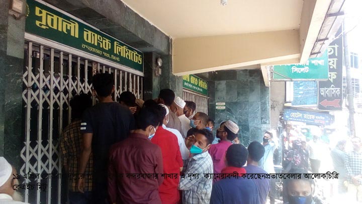 ব্যাংকগুলোতে যতটা না মানুষের ভীড়। তার চেয়ে বেশী ব্যাংক কর্তৃপক্ষের সৃস্ট ভীড়। অহেতুক গ্রাহকদের হয়রানী ও জটলা করে রাখছে তাদের ব্যবস্থাপনা। বন্দরবাজার পূবালী ব্যাংকে দেখা গেছে এমনি এক চিত্র। কলাপসিবল গেট বন্ধ করে রাখা হয়েছে। ফলে গ্রাহকদের ভীড়ে ভেস্তে যাচ্ছে সামাজিক দুরুত্ব। অথচ সুষ্টু ব্যবস্থাপনা